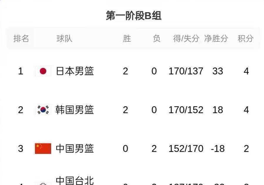 同一晚,日本队以90:64大胜中国台北队。加上本次比赛日本队80:73再次战胜中国台北队,日本与韩国双双取得两连胜,在B组积分榜上领先。