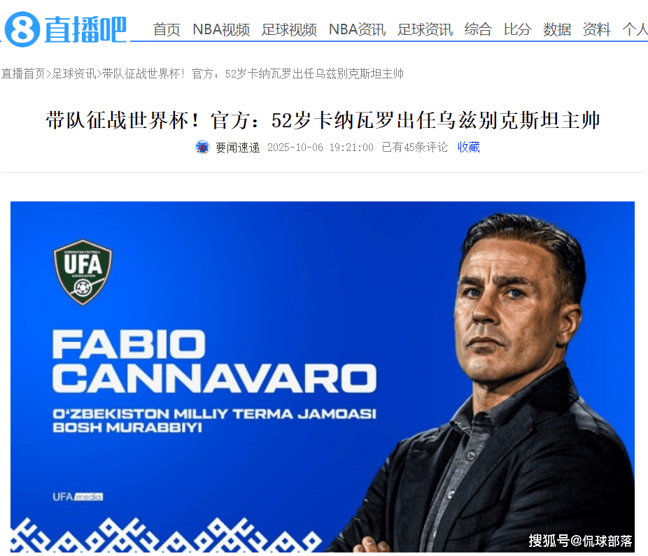 上个月初,足协官方发布了竞聘国足主帅的公告,国内媒体确认卡纳瓦罗非常感兴趣,也是提交了报名表,但随后不了了之,并且开始跟乌兹别克斯坦足协进行接触。