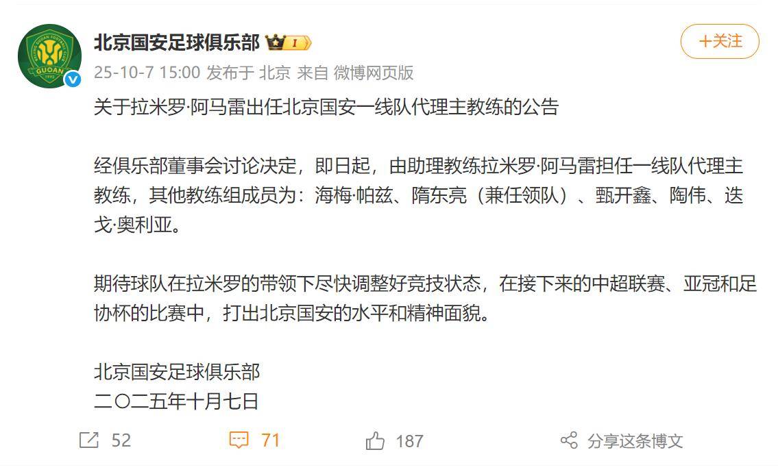 国安管理层选择拉米罗接任,主要是看重他对球队的熟悉程度和稳定性。作为教练组中的重要一员,他了解现有的战术体系和球员特点,可以迅速投入工作,无需过多磨合。