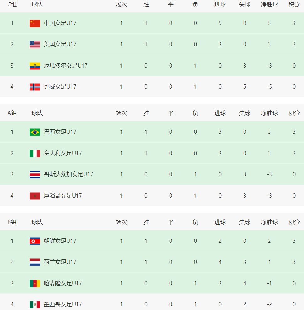 根据赛程安排,首轮小组赛分成三个比赛日进行,第一日,东道主摩洛哥0-3惨败巴西,输掉揭幕战,到了第二日,中国女足开始亮相,面对欧洲杯亚军挪威,最终踢出5-0的狂胜比分,创造球队本世纪国际大赛最大赢球比分纪录。