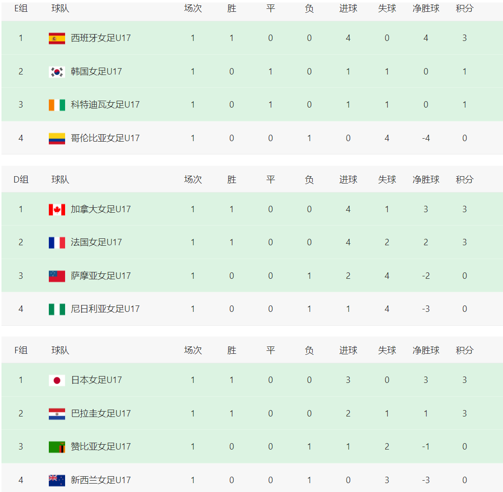 亚洲四队当中,中国女足、日本、朝鲜同时领跑各自小组积分榜,另外韩国暂居小组第二,展现很强的竞争力,欧洲球队方面只有西班牙排名小组第一。返回搜狐,查看更多