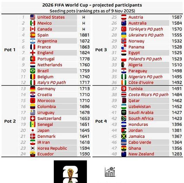 以他们目前高居前列的FIFA排名,一旦新规落地,他们将一飞冲天,从理论上的“第四档鱼腩”,瞬间变身为“第一档种子队”!
