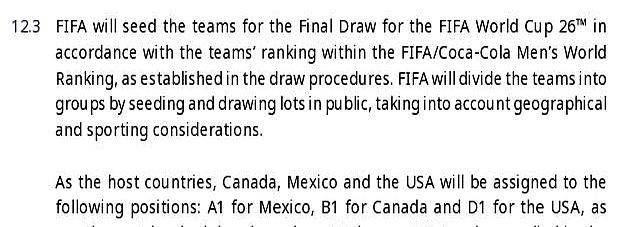 该网站特别指出,FIFA至今没有“更改”任何条款,恰恰是因为在2026年世界杯的官方规章里,根本就没写明具体的分档原则!