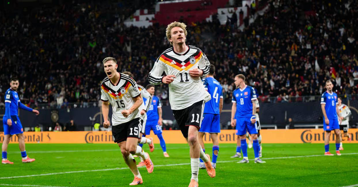 这场比赛中,德国队仅需一个平局即可锁定小组第一直接晋级世界杯正赛,但面对实力不俗的斯洛伐克,他们选择了全力进攻,全面掌控比赛节奏。第18分钟,基米希在前场边路送出精准传中,沃尔特马德高高跃起头球破门,为球队率先取得领先。随后在第30分钟,格雷茨卡一记妙传直塞撕开防线,格纳布里迅速插上禁区左路冷静将球送进,扩大比分为2-0。