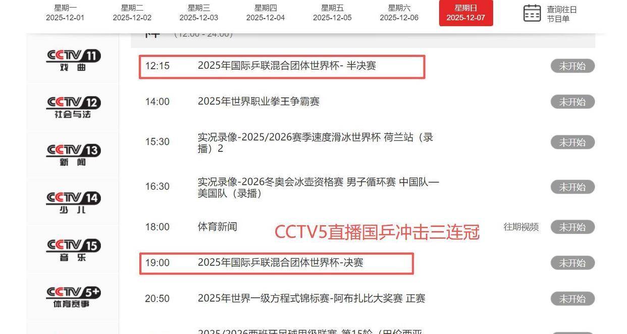 晚上的决赛则定于19点开始,由CCTV5全程直播。 这种调整显示出电视台对赛事密集程的灵活应对。