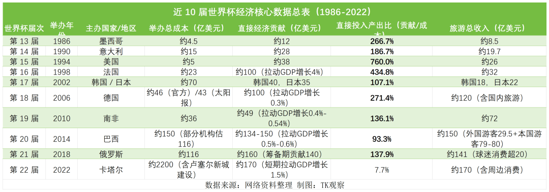 呈逐届攀升的态势。特别是2022年卡塔尔世界杯因超大规模基建甚至创下2200亿美元的历史纪录。正是这个关键指标的失衡导致了世界杯赛事经济投入产出比无法复制出1994年美国世界杯760%的高回报神话。因此,从成本因素来看,2026