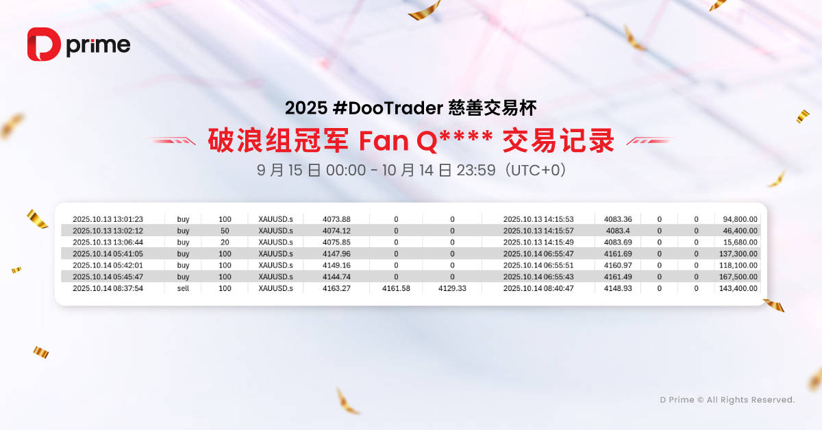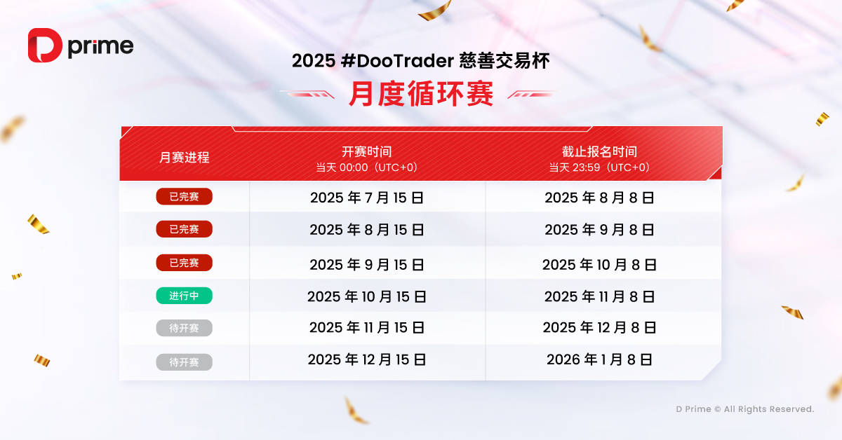 值得关注的是,2025 #DooTrader 慈善杯交易杯不仅是一场较量,更是一个传递爱心的公益活动。每当您在比赛中完成 1 手交易,D Prime 都将代表您捐出 0.1 美元,帮助改善贫困儿童的教育条件,让您的每一笔交易助力点亮更多孩子的未来。
