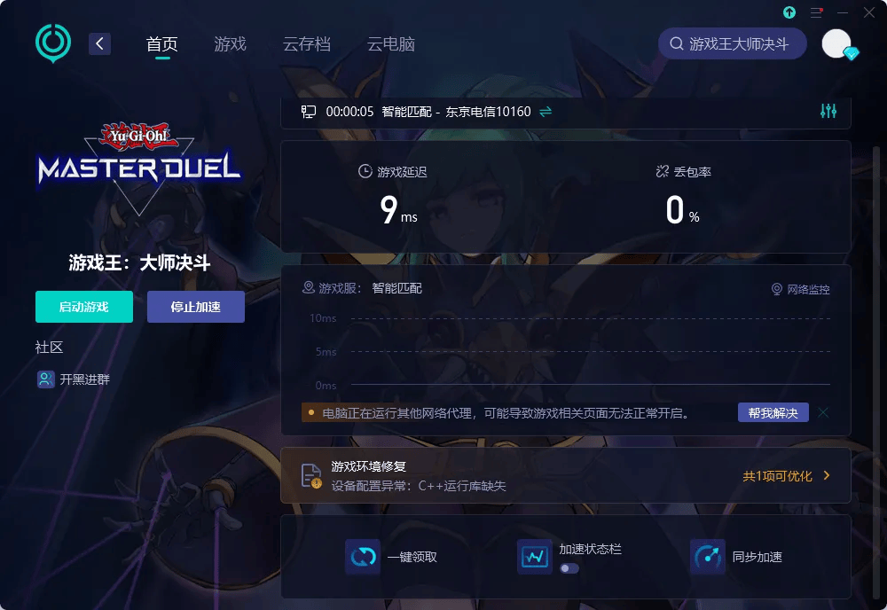 UU加速器具备一键跨区功能,用户只需在加速器内搜索“游戏王大师决斗”,点击对应图标并开启加速,即可突破锁区限制,自由浏览官网、获取最新资讯。